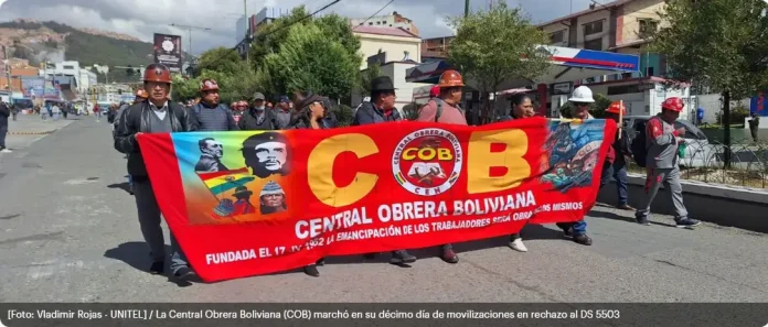 La COB lleva su décimo día de movilizaciones y tercer día de huelga de hambre, exigiendo la abrogación del DS 5503.
