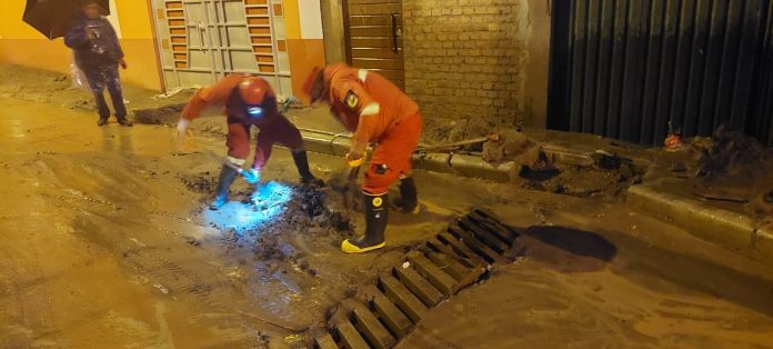 De manera similar, en la zona Cantumarca, calle 1 de Mayo, se registró el ingreso de agua a un domicilio de la señora C. M., donde los efectivos realizaron labores de auxilio y evacuación del agua acumulada a causa de las fuertes precipitaciones.