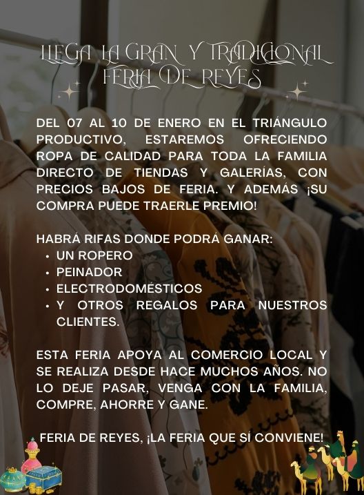 InicioRadio CambalacheLlega la Gran... Llega la Gran y Tradicional Feria de Reyes… Por Equipo de Edición 6 enero, 2026 - 12:00 FacebookWhatsAppTwitter Últimas Noticias Fiscalía investiga el fallecimiento de una joven de 18... Portada Cuatro personas pierden la vida en diferentes hechos de tránsito Seguridad Fiscalia investiga por parricidio a sujeto que habría quitado la vida a su madre en Yacuiba Seguridad Presidente del TSJ destaca actuación de Fiscal General en defensa de la Institucionalidad y la Independencia Judicial Deportes Ramiro Vaca vuelve a la selección Nacional Continua leyendo Radio CambalacheConvocatoria – Actualización del Estudio Diseño Técnico de Preinversión (EDTP) del Proyecto de Construcción Instituto Técnico INCOS Potosí D-8 Radio CambalacheInvitación de la Carrera de Tecnico Medio en Electricidad de la UATF Radio CambalacheTaller Gratuito sobre salud visual