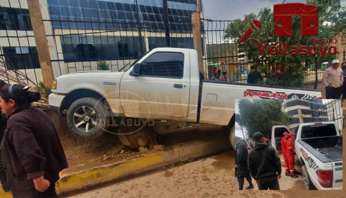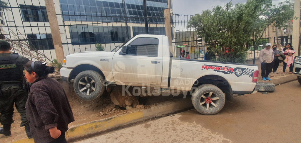 Camioneta impacta contra baranda de la UATF; conductor estaría en estado de ebriedad