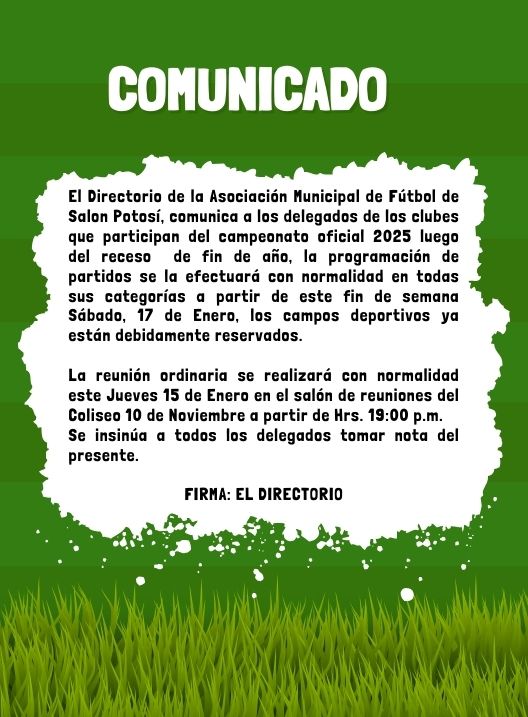 Comunicado – Asociación Municipal de Fútbol de Salón Potosí