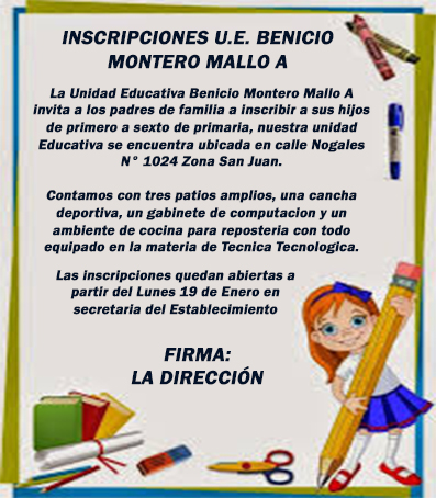 InicioRadio CambalacheINSCRIPCIONES UNIDAD EDUCATIVA... INSCRIPCIONES UNIDAD EDUCATIVA “BENICIO MONTERO MALLO A” Por Equipo de Edición 21 enero, 2026 - 20:05 FacebookWhatsAppTwitter Últimas Noticias Dirigentes cuestionan falta de avances en estatuto autonómico y... Portada Reclamos por incumplimiento en la distribución de garrafas de GLP en Potosí Portada El pulso del día: El poder del abrazo Portada Tupiza: Renombran escuela que llevaba el nombre de Evo Morales Ayma ¿Sabía usted? El celibato actual, ¿tendencia o carencia? Continua leyendo Radio CambalacheINSCRIPCIONES UNIDAD EDUCATIVA “CHALVIRI” Radio CambalacheINSCRIPCIONES UNIDAD EDUCATIVA “SAMASA BAJA” Radio CambalacheINSCRIPCIONES CENTRO DE EDUCACIÓN ESPECIAL POTOSÍ