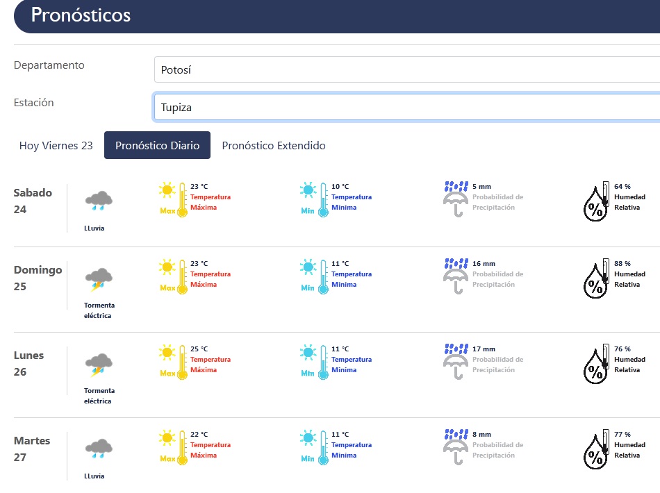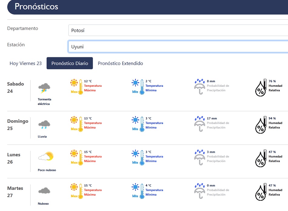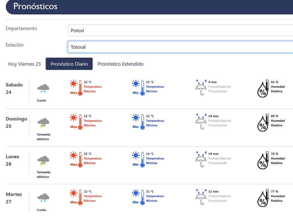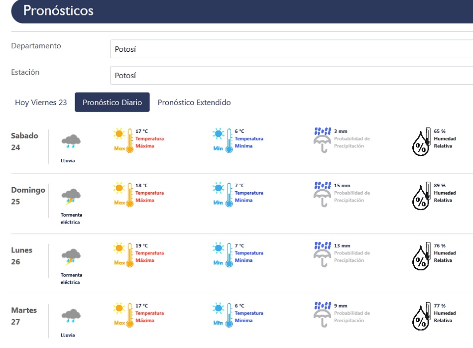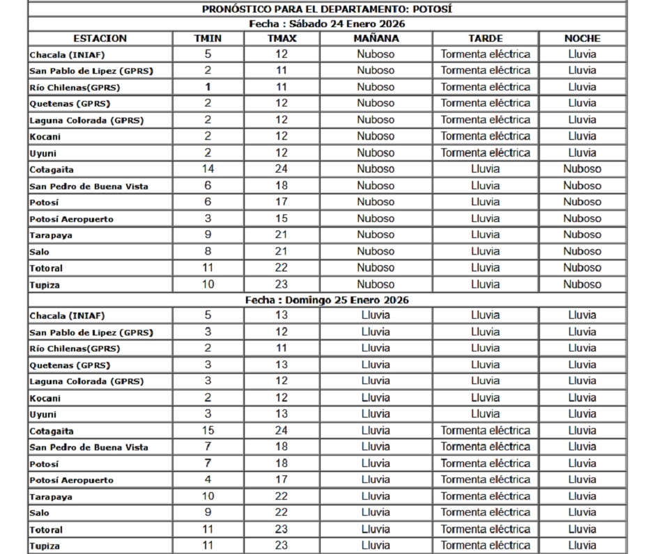 Continuarán las temperaturas veraniegas en las cuatro regiones de Potosí; pero con lluvias hasta el martes de la semana que viene, de acuerdo al pronóstico del Servicio Nacional de Meteorología e Hidrología (Senamhi).
