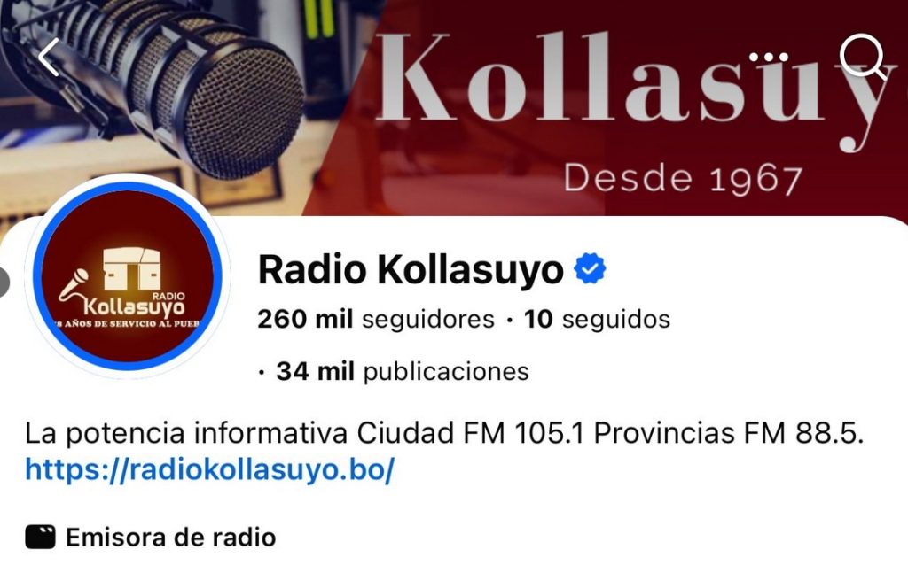 Meta, la compañía dueña de Facebook, otorgó este status a Radio Kollasuyo por los índices de credibilidad, los grupos etarios a los que llega, la cantidad de seguidores y las visitas diarias.
