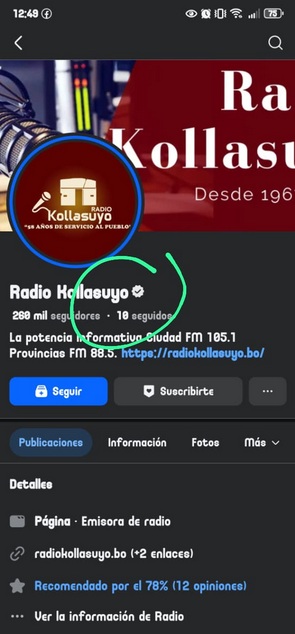 Radio Kollasuyo ya pertenece a las marcas destacadas de Facebook desde este mediodía, luego de cumplir una serie de requisitos que le permitieron obtener la insignia que autentica el carácter oficial de la página en las Redes Sociales.