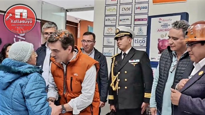 Luego del inicio del pago del Bono Pepe, que tuvo lugar en el parqueo del edificio de la Gobernación, pasado el mediodía el dignatario de Estado, Rodrigo Paz, se trasladó hasta una agencia del Banco FIE de la Villa Imperial.