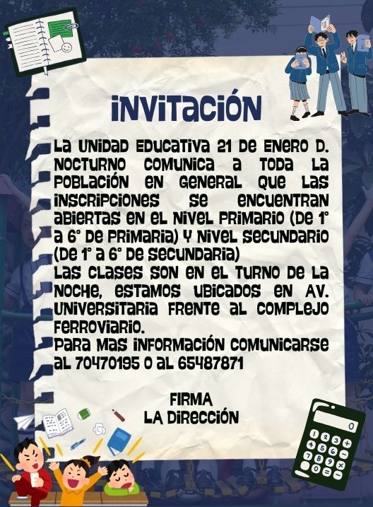 InicioRadio CambalacheInvitación - Unidad... Invitación – Unidad Educativa “21 de Enero D” Por Equipo de Edición 27 enero, 2026 - 12:47 FacebookWhatsAppTwitter Últimas Noticias El Pulso del día: COB analizará el proyecto de... Portada 18 Jucus atracan a ingenio minero huyendo con sacos del metal precioso Cultura y Espectáculos El Rey del Pop llegará a Berlín con “Michael”: qué se sabe sobre el estreno mundial de la biopic que ya promete sacudir a... Cultura y Espectáculos “Pluribus”: ¿Qué hace humano al ser humano? Nacional Caso ‘narcomaletas’ salpica a fucionarios judiciales usados como ‘palo blanco’ Continua leyendo Radio CambalacheCentro Psicopedagógico Parvulario “Mi zapatito de Colores” Radio CambalacheInvitación – Instituto Tecnológico Superior Nuevo Amanecer Radio CambalacheInvitación – Unidad Educativa Técnico Humanístico Chalviri