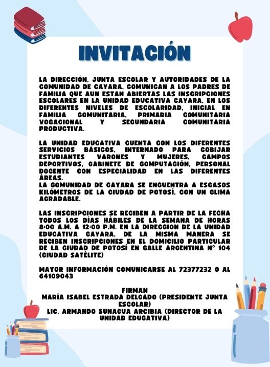 Invitación – Unidad Educativa Cayara