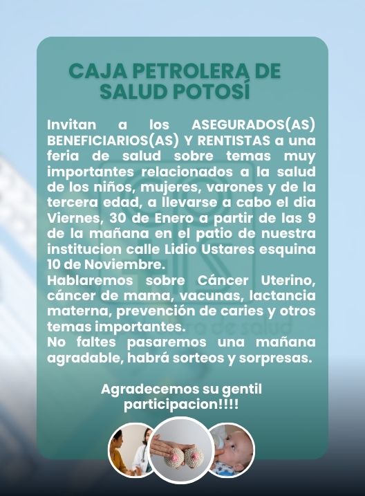 InicioRadio CambalacheCaja Petrolera de... Caja Petrolera de Salud Potosí invita a una Feria de Salud Por Equipo de Edición 29 enero, 2026 - 12:07 FacebookWhatsAppTwitter Últimas Noticias UATF aplicó la segunda prueba de suficiencia académica ¿Sabía usted? Cuatro estiramientos que mejoran la movilidad de la espalda en personas sedentarias, según un experto Cultura y Espectáculos Desde transparencias hasta texturas innovadoras: el nuevo lenguaje de la alta costura en París Cultura y Espectáculos Primer vistazo a la temporada 4 de “Ted Lasso”: todo sobre el regreso de la aclamada serie de Apple TV Nacional “Reafirmamos nuestra visión de convertir a Bolivia en el eje conector de Sudamérica”, dice Paz desde el Canal de Panamá Continua leyendo Radio CambalacheAtención, por inicio de clases… gran liquidación de mochilas Radio CambalacheInvitación – Unidad Educativa Isla Radio CambalacheREQUERIMIENTO DE PERSONAL: AYUDANTE DE COCINA
