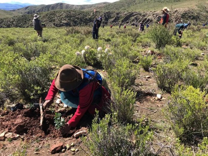 “Hoy estamos plantando aproximadamente 8.000 plantas de queñua, que contribuirán a la restauración de la zona y a la protección de la vertiente”, explicó.