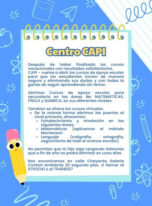 Centro CAPI, vuelve a abrir sus cursos de apoyo escolar…