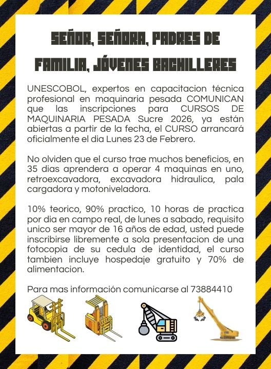 InicioRadio CambalacheUNESCOBOL, expertos en... UNESCOBOL, expertos en capacitación técnica profesional en maquinaria pesada Por Equipo de Edición 5 febrero, 2026 - 12:43 FacebookWhatsAppTwitter Últimas Noticias “A veces la vida sana se convierte en represión”:... ¿Sabía usted? Al menos 1,2 millones de niños han sido desnudados y sexualizados en ‘deepfakes’ Nacional En medio de los reclamos, YPFB activa el control de calidad de combustibles en el punto de importación en Paraguay Nacional La UE apoyará con 9 millones de euros para la transición energética de Bolivia Portada Microempresas viales entran en vigilia y advierten paro por retraso en pagos de la ABC Continua leyendo Radio CambalacheOpen House Potosí – Essen Radio Cambalache¿Sabías que ahora puedes salir bachiller lo antes posible? Radio CambalacheCurso de Reparación de Celulares