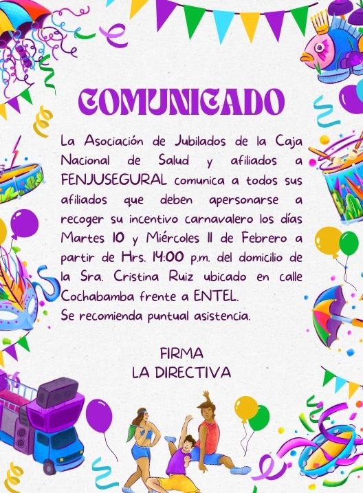 InicioRadio CambalacheComunicado - Asociación... Comunicado – Asociación de Jubilados de la Caja Nacional de Salud y Afiliados a FENJUSEGURAL Por Equipo de Edición 9 febrero, 2026 - 12:02 FacebookWhatsAppTwitter Últimas Noticias Donald Trump sobre la actuación de Bad Bunny en... Portada Tragedia en Villa Fátima, La Paz: dos muertos y varios heridos tras choque de un minibús Cultura y Espectáculos Bad Bunny deslumbra en la Super Bowl con una odisea puertorriqueña y la defensa de América más allá de Estados Unidos Nacional En dos años, la planta de litio en Llipi no superó el 15% de su capacidad productiva Deportes Independiente le gana a Tomayapo y consigue el último boleto a cuartos Continua leyendo Radio CambalacheExpo Feria Escolar Potosí 2026 Radio CambalacheConvocatoria a Asamblea Ordinaria – Ilustre Colegio de Abogados de Potosí Radio CambalacheComunicado – Asociación de Jubilados cooperativistas del Sistema Integral de Pensiones