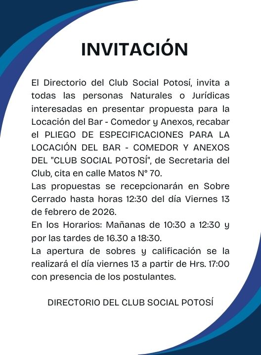 Invitación – Directorio Club de Social Potosí