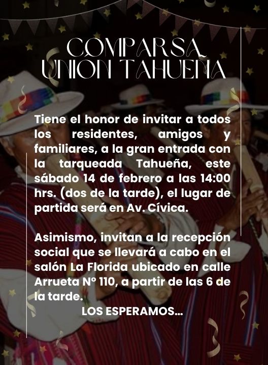 InicioRadio CambalacheInvitación - Comparsa... Invitación – Comparsa Unión Tahueña Por Equipo de Edición 13 febrero, 2026 - 12:36 FacebookWhatsAppTwitter Últimas Noticias Agencia antinarcóticos DEA colabora con Bolivia; se ultima su... Deportes Nacional Potosí – Botafogo: una noche mágica en la Copa Libertadores de América Portada Heladas y granizadas provocaron pérdidas en la producción agrícola de la comunidad Estumilia Portada La intendencia municipal hará los controles en los mercados de la ciudad por el feriado de los carnavales Nacional Festejo de comadres en Tarija destaca la tradición y alegría en el inicio del Carnaval Continua leyendo Radio CambalacheSeguimos con las inscripciones para la nueva gestión Radio CambalacheInvitación – Kindergarten Venezuela Radio CambalacheBanco Unión S.A. comunica a sus clientes y público en general