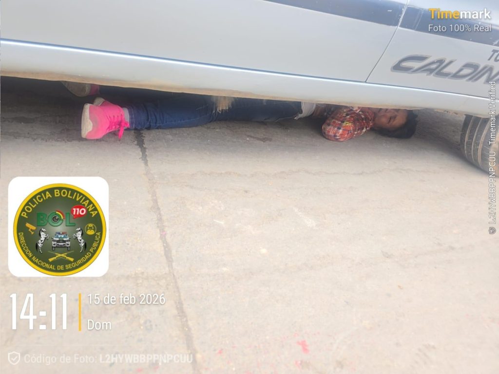 El hecho se registró en la calle 15 de Mayo, entre Santa Cruz, cerca del mercado Uyuni, donde el conductor de un vehículo que se encontraba estacionado advirtió que una mujer, en aparente estado inconveniente, se había introducido debajo de su motorizado.