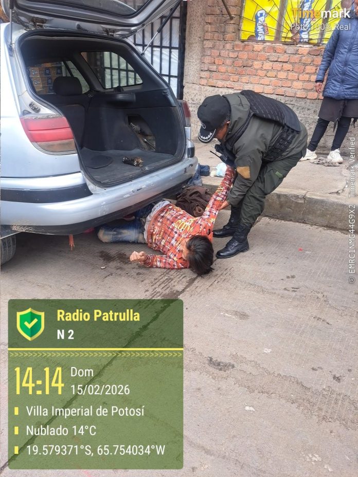 Potosí: Rescatan a mujer en estado de ebriedad que se introdujo bajo un vehículo estacionado