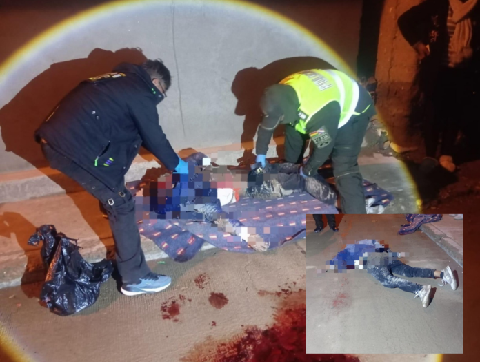 Ya en la calle Uncía, a la altura de la plaza principal de Cala Cala, los uniformados tomaron contacto con los comunarios y evidenciaron la presencia de una persona de sexo masculino sin signos vitales, en posición decúbito ventral sobre la vía pública.