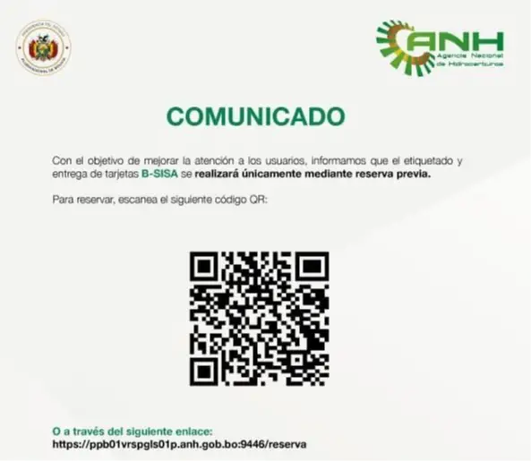 La Agencia Nacional de Hidrocarburos (ANH) informó que el etiquetado y la entrega de la tarjeta B-SISA se realizarán mediante reserva previa obligatoria, a través de un código QR o un enlace digital habilitado para ese fin.