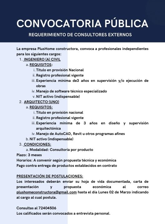 Convocatoria Pública – Requerimiento de Consultores externos