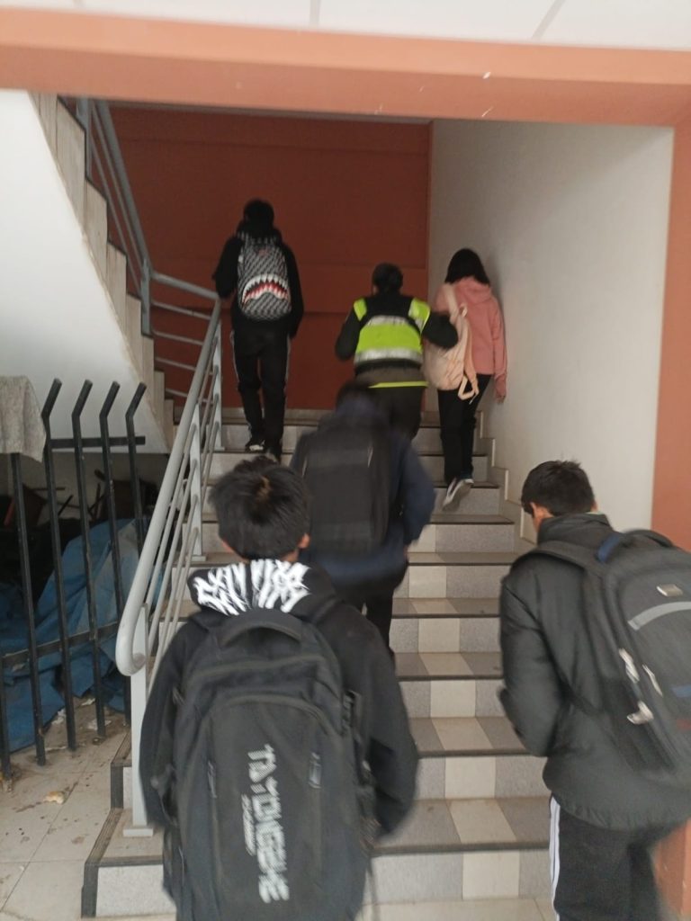 Al evidenciarse el consumo de alcohol, se solicitó de inmediato la presencia de un vehículo patrullero de la Estación Policial Integral N° 8. Posteriormente, los involucrados fueron conducidos a dependencias de la Fuerza Especial de Lucha Contra el Crimen (FELCC), División Menores.