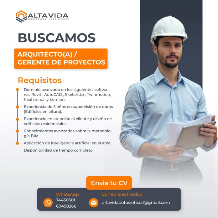 REQUERIMIENTO DE PERSONAL: ARQUITECTO (A) GERENTE DE PROYECTOS
