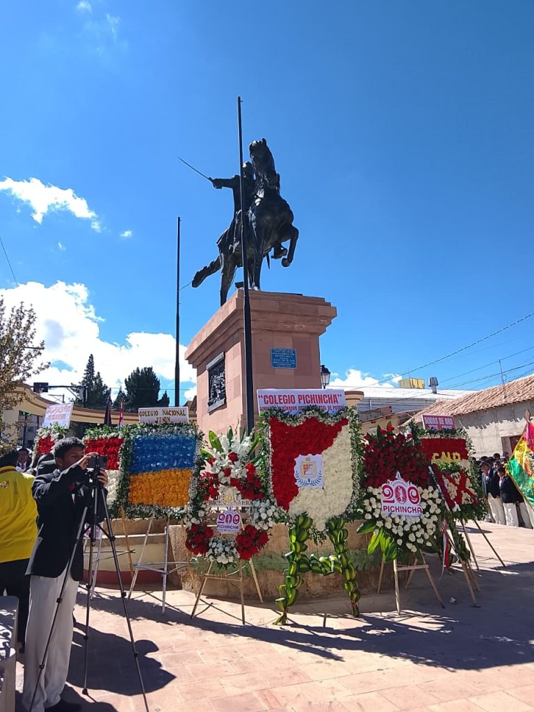 Con mucho entusiasmo y orgullo, las autoridades, invitados especiales, personal docente, administrativo, estudiantes, ex alumnos, padres de familia y vecinos del pueblo potosino que se apostaron por las principales arterias y plaza de armas 10 de noviembre, fueron fieles testigos el día de ayer domingo de las ofrendas florales que se colocó a los pies del ex presidente de Bolivia: Antonio José Francisco de Sucre y Alcalá, fundador del Colegio Nacional “Pichincha”, como de la caravana de plata, desfile y escenificación del momento histórico en el que se creó el 2 de marzo de 1826. Fecha de la que hoy se cumplen dos siglos de vida.
