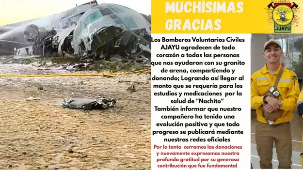 5 de marzo (Urgente.bo).- En las últimas horas, “Bomberos Voluntarios Civiles Ajayu” lanzó una campaña de ayuda para Ignacio Baya Nacif, bombero rescatista voluntario que recibió una pedrada el día del accidente aéreo que ocurrió el pasado viernes.