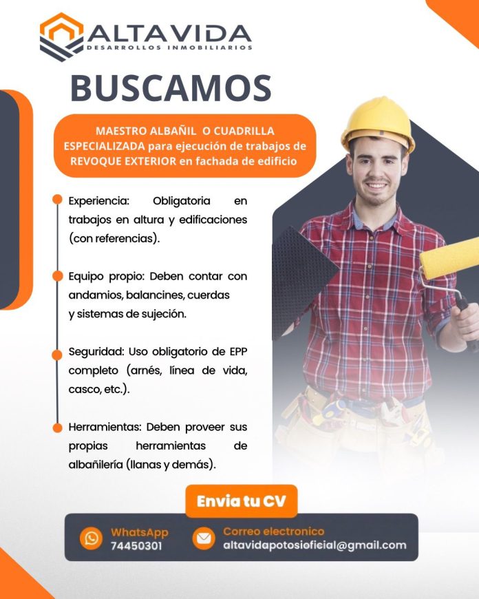 InicioRadio CambalacheSE REQUIERE UN... SE REQUIERE UN MAESTRO ALBAÑIL O CUADRILLA ESPECIALIZADA Por Equipo de Edición 10 marzo, 2026 - 15:06 FacebookWhatsAppTwitter Últimas Noticias Fiscal Departamental inspecciona el Asiento Fiscal de Toro Toro... Portada Coordinan primer vuelo de aterrizaje para validar la nueva pista del Aeropuerto de Potosí Portada CNS fortalece su gestión regional: posesionan nuevos agentes distritales en Uyuni y Uncía Portada Crisis en la ALD Potosí: presidenta Jhenny Quisbert denuncia que le impiden el ingreso a su oficina Portada Atropello con fuga deja un hombre fallecido en la carretera Tupiza – Villazón Continua leyendo Radio CambalachePrograma Potosí de Aldeas Infantiles SOS en Bolivia Radio CambalacheComunicado – Jurados electorales del recinto “Unidad Educativa 6 de Junio” Radio CambalacheNo te pierdas la oportunidad de llevar tus habilidades culinarias al siguiente nivel…