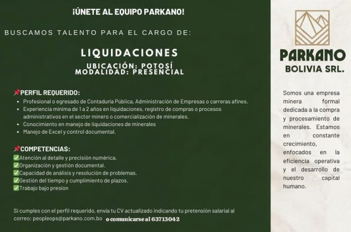InicioRadio CambalacheREQUERIMIENTO DE PERSONAL... REQUERIMIENTO DE PERSONAL PARA EL CARGO DE LIQUIDACIONES Por Equipo de Edición 11 marzo, 2026 - 15:13 FacebookWhatsAppTwitter Últimas Noticias Gobierno posesiona a un abogado como presidente de YLB;... ¿Sabía usted? Encuentran una bacteria en el intestino humano capaz de mejorar la fuerza muscular Portada Gobernación de Potosí lanza la XII Feria Productiva Departamental para reactivar la economía regional Portada Trabajadores administrativos de la UATF inician paro de 48 horas en demanda de nivelación salarial Portada Padres de la U.E. Sucre cercan la Alcaldía exigiendo nueva infraestructura y mobiliario Continua leyendo Radio CambalacheREQUERIMIENTO DE PERSONAL: ENCARGADO DE COMERCIALIZACION MINERA Radio CambalacheConvocatoria – Colegio de Odontólogos de Potosí Radio CambalacheAtención señores cooperativistas mineros de Potosí…
