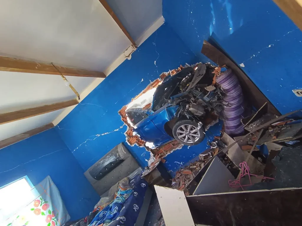 El incidente corresponde a un choque a objeto fijo, luego de que un vehículo impactara contra una vivienda particular. El conductor fue identificado con las iniciales D.J.Ch.F., de 30 años de edad, de ocupación minero, quien se encontraba al mando de un automóvil marca Changan, color azul, con placa de control 6299-RTF.