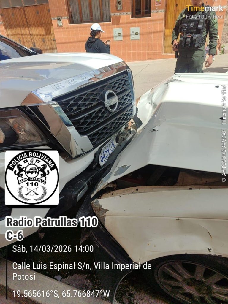 Un vehículo particular conducido por un hombre de 34 años, que presuntamente se encontraba en estado de ebriedad, protagonizó una triple colisión contra dos vehículos estacionados, dejando únicamente daños materiales y sin personas heridas. El hecho se registró este sábado 14 de marzo, aproximadamente a las 14:00 horas, en la intersección de la calle Argentina y Luis Espinal, en la parte baja de la ciudad de Potosí.
