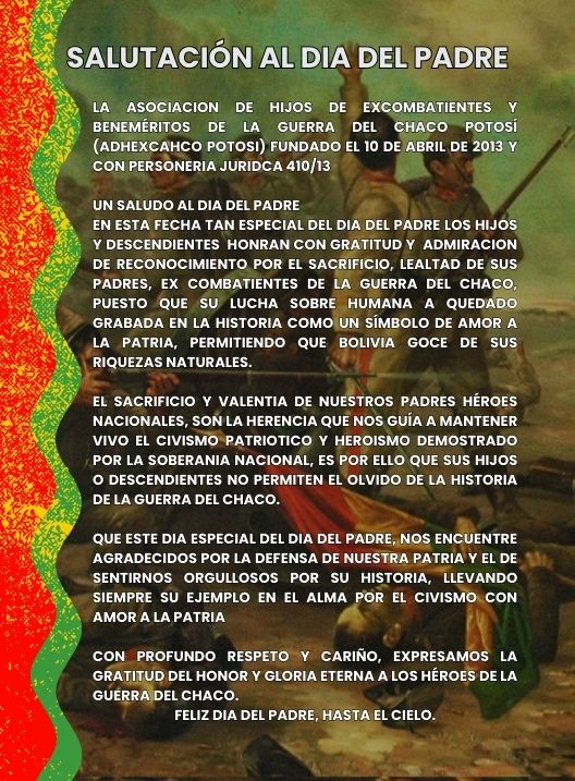 InicioRadio CambalacheSalutación al Dia... Salutación al Dia del Padre – Asociación de hijos de excombatientes de la Guerra del Chaco Potosí Por Equipo de Edición 19 marzo, 2026 - 12:09 FacebookWhatsAppX Últimas Noticias Hallan 43 toneladas de sustancias controladas en galpones de... Portada Asegurados de Uyuni toman la CNS para evitar traslado de cuatro ambulancias Portada Alerta en Betanzos: fachada de la ex-subprefectura en riesgo de colapso tras fuerte granizada Portada Desastre en Betanzos: granizada devasta siete comunidades y deja a más de 300 familias en emergencia Portada UATF destaca acreditación internacional de sus carreras y proyecta nuevos avances académicos Continua leyendo Radio CambalacheSalutación – Servicio de Impuestos Nacionales Radio CambalacheSalutación al Padre Pichincheño Radio CambalacheConvocatoria a Asamblea General Ordinaria de Socios