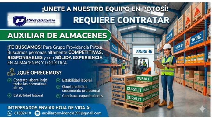 REQUERIMIENTO DE PERSONAL: AUXILIAR DE ALMACENES
