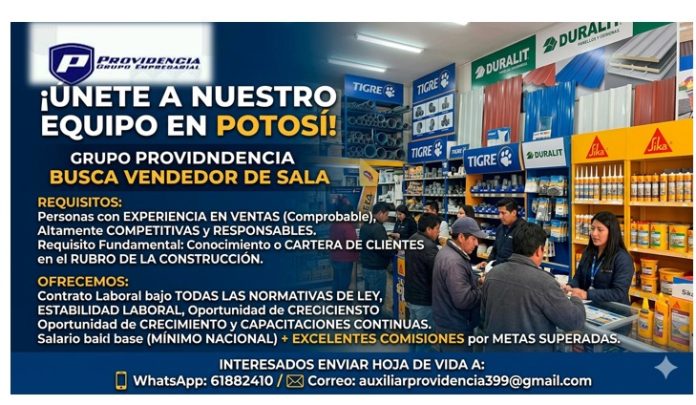 REQUERIMIENTO DE PERSONAL: VENDEDOR DE SALA