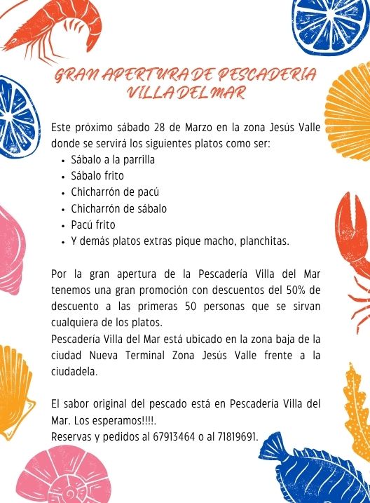 Gran Apertura de Pescaderia “Villa del Mar”