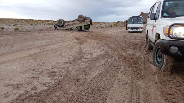 Un hecho de tránsito registrado la mañana del jueves 26 de marzo dejó como saldo tres personas heridas en inmediaciones de la planta de Yacimientos de Litio Bolivianos (YLB), en la jurisdicción de San Cristóbal.