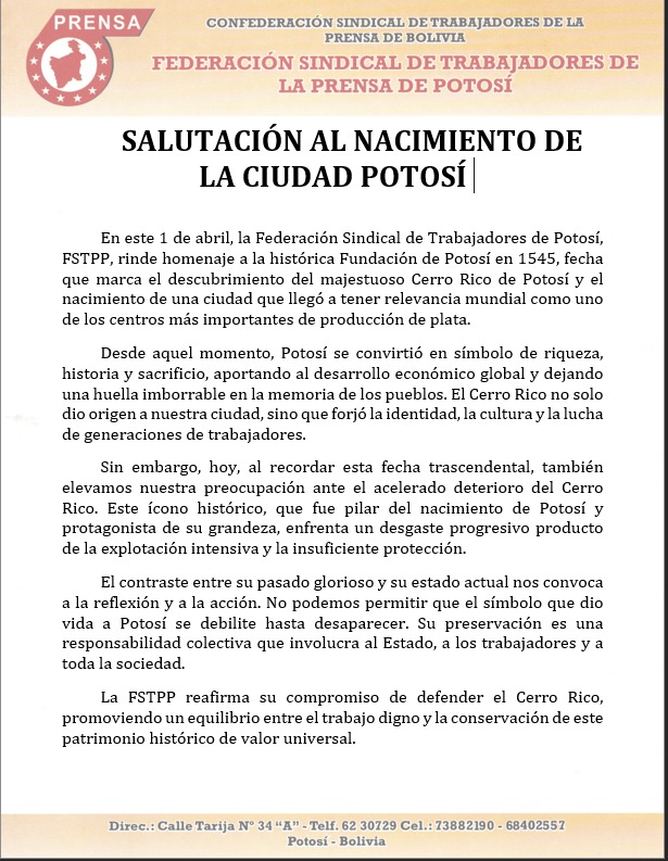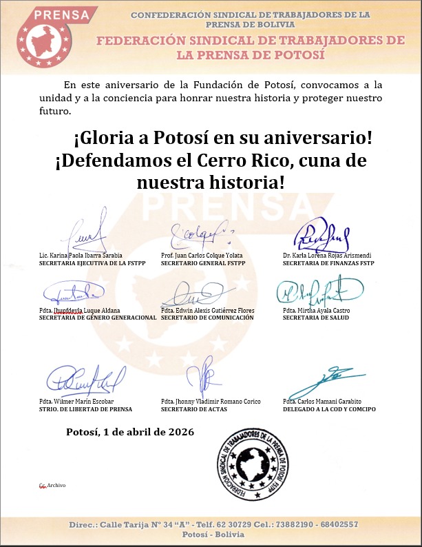 InicioRadio CambalacheMENSAJE DE SALUTACION... MENSAJE DE SALUTACION AL NACIMIENTO DE LA CIUDAD DE POTOSI Por Equipo de Edición 1 abril, 2026 - 14:08 FacebookWhatsAppX Últimas Noticias Así será el recorrido de Artemis 2 hacia la... Deportes Una Bolivia batalladora y que mereció más, cae con la frente en alto contra Irak Portada Aeropuerto de Potosí proyecta operar aeronaves de mayor capacidad tras pruebas de vuelo Portada Ministerio Público y FEDECOMIN articulan acciones para frenar el robo de minerales en Potosí Portada CODEPEDIS insta a personas con discapacidad a cobrar el bono “PEPE” antes de fin de mes Continua leyendo Radio CambalacheSalutación – Unidad Educativa Técnico Humanístico “1° de Abril” Radio CambalacheNuevamente en Potosí, el Gran Tratamiento de Apiterapia Radio CambalacheSalutación – Unidad Educativa Tomás Frías