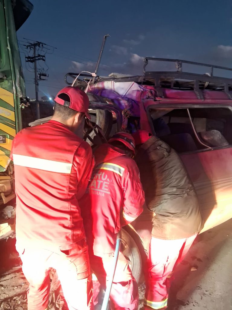 El equipo procedió a la extracción del cuerpo, que se encontraba atrapado dentro de un minibús marca King Long, color rojo, con placa de control 3781-BRL.