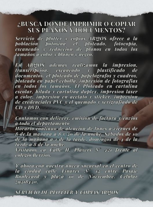 InicioRadio Cambalache¿Busca dónde imprimir... ¿Busca dónde imprimir o copiar sus planos y documentos? Por Equipo de Edición 9 abril, 2026 - 11:40 FacebookWhatsAppX Últimas Noticias Así es el perro robot que ‘habla’ y guía... ¿Sabía usted? Dolor de espalda al despertar: las 4 causas más comunes y cómo solucionarlas Portada Fallo agroambiental confirma contaminación con cianuro en lagunas de Potosí y da la razón a la Demanda de la Concejal Portada Comcipo denuncia nuevos hundimientos en el Cerro Rico y apunta a negligencia de autoridades Portada Analista aclara alcances del Decreto Supremo 5600 sobre compras directas en el Estado Continua leyendo Radio CambalacheCampaña Gratuita de Cirugías… Radio CambalacheRequerimiento de personal Radio CambalacheInvitación – Comunidad de Sangari