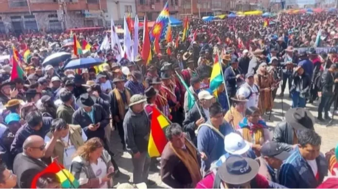 La Paz, 11 de abril del 2026 (ANF).- El cabildo convocado por el senador Nilton Condori logró una masiva asistencia de campesinos y organizaciones sociales para exigir una reducción considerable del sueldo de las autoridades del Legislativo, Ejecutivo y todos los funcionarios públicos.