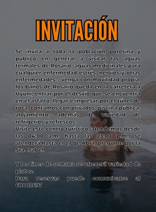 InicioRadio CambalacheInvitación - Aguas... Invitación – Aguas termales de Rosario Por Equipo de Edición 15 abril, 2026 - 11:50 FacebookWhatsAppX Últimas Noticias Denuncia que concejales y dirigentes vecinales estarian involucrados en... Portada Intervendrán la administración del Cementerio General por venta ilegal de predios Portada Víctimas de violencia deben gastar unos Bs. 5.000 para que atiendan sus denuncias Portada Puna: 20 comunidades quedaron afectadas tras caída de granizada Portada Defensa Pública: Tres abogados atienden más de 1.800 casos Continua leyendo Radio CambalacheMia Bella Beauty Studio, Gran Reapertura este jueves 16 de abril Radio CambalacheConvocatoria Pública – FEDECOMIN Potosí R.L. Radio CambalacheInvitación Pública – Primera Convocatoria