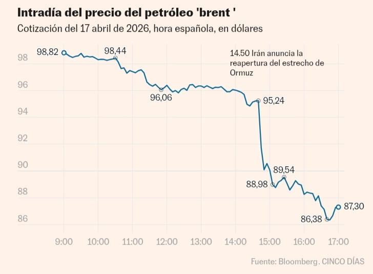 Los mercados han escuchado hoy la noticia que llevaban esperando mes y medio. Irán ha anunciado la reapertura del estrecho de Ormuz como parte de las negociaciones en marcha con Estados Unidos. La señal definitiva de desescalada que los inversores ya empezaban a vislumbrar en las jornadas precedentes. El desbloqueo de esta arteria esencial para la economía mundial, por donde circula una quinta parte del petróleo y el gas licuado del mundo, puede suponer el inicio de una salida ordenada de la crisis energética que amenazaba con lastrar a la economía mundial. El alivio ha sido inmediato en los mercados, con los precios de la energía acelerando las caídas —el brent ya por debajo de los 90 dólares— y las Bolsas en los niveles previos al inicio de la guerra.