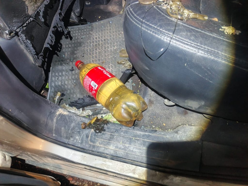 Al salir a contener el fuego, se hallan dos bidones con combustible en el interior del motorizado, así como un par de dinamitas colocadas en el escape, a la altura del tanque de gasolina. El objetivo era hace explotar el vehículo.