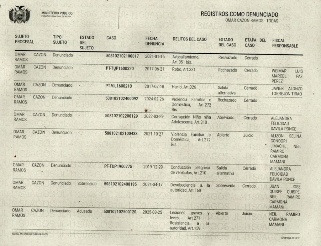 Luis Fernando Cardozo presentó una demanda ante la Fiscalía de Tupiza contra Omar Cazón por la presunta comisión del delito de intento de asesinato y que tiene relación con el incendio de su vehículo.
