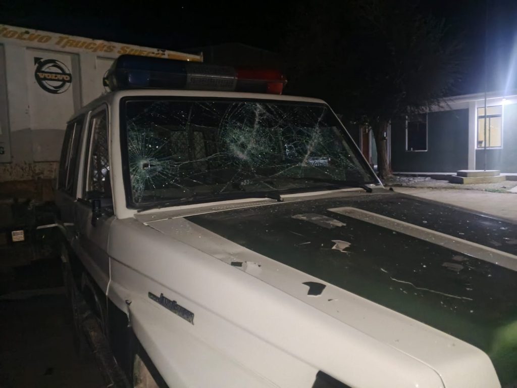 Más tarde, llegan hasta el módulo policial de Cotagaita ocasionando destrozos en las oficinas, así como en la camioneta patrullera.