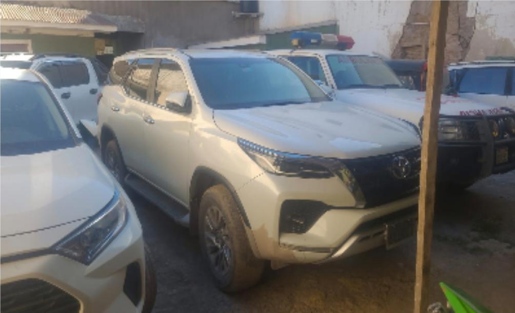 Igualmente, el Toyota New Fortuner, color blanco perlado, modelo 2021, tiene un valor similar y su placa también fue duplicada.