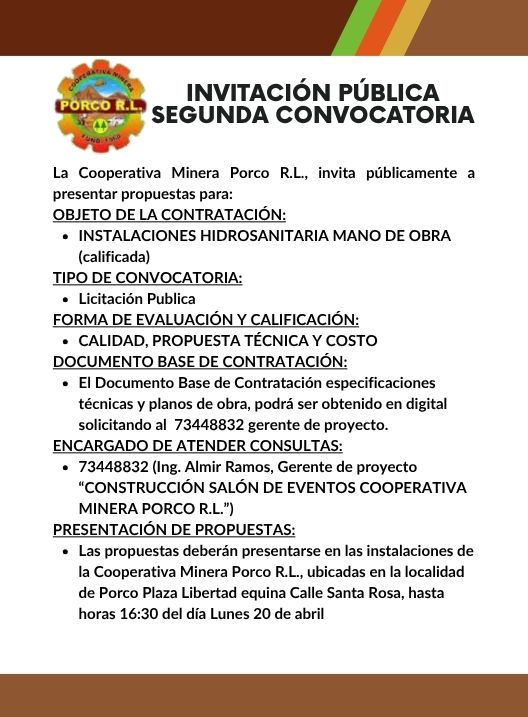 InicioRadio CambalacheInvitación Pública -... Invitación Pública – Segunda Convocatoria Por Equipo de Edición 17 abril, 2026 - 11:31 FacebookWhatsAppX Últimas Noticias Dólar referencial llega a Bs 9,63 y marca su... Internacional El petróleo se desploma y la Bolsa recupera los niveles previos a la guerra Horóscopo Horóscopos de Mhoni Vidente para el fin de semana del 17 al 19 de abril Portada Chile y Bolivia iniciaron operativo conjunto contra las actividades delictivas en la frontera Portada Padres de Familia instalarán piquete de huelga esperando informe del Desayuno Escolar Continua leyendo Radio CambalacheInvitación Pública – Segunda Convocatoria Radio CambalacheRequerimiento de personal: Muestrero. Radio CambalacheInvitación – Gran Kermés Solidaria, Pastoral Social Caritas Potosí
