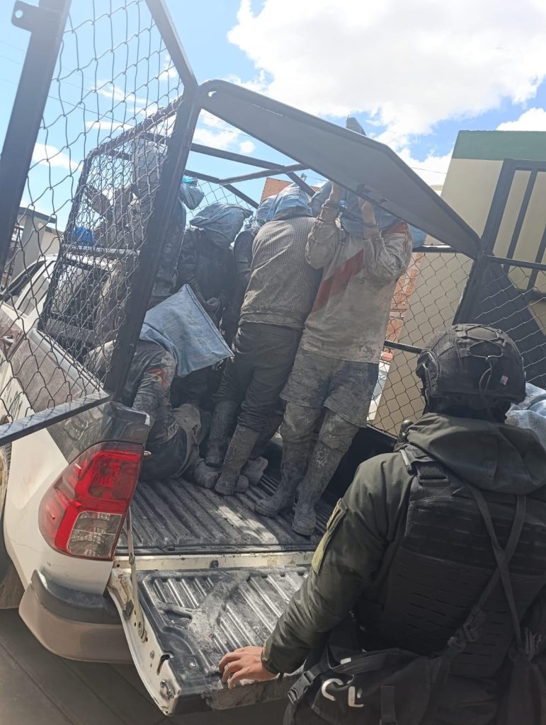 El despliegue policial se realizó de manera conjunta con efectivos de la Unidad de Reacción Inmediata DELTA de la Policía Departamental, logrando la aprehensión de nueve presuntos “jucus”, denominación con la que se conoce a los ladrones de mineral.