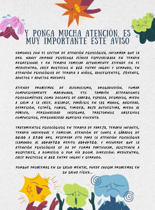 Y ponga mucha atención a este aviso, nos vamos con el sector de Psicología